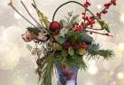 Vrolijk kerststuk op vaas. Is ook te leveren met lichtjes. Kan ook worden geleverd in diverse kleuren en maten.