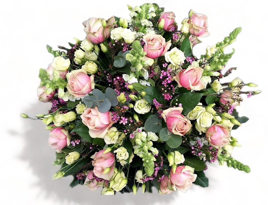 Het rouwarrangement kan iets afwijken van de foto i.v.m. beschikbaarheid van de bloemen.