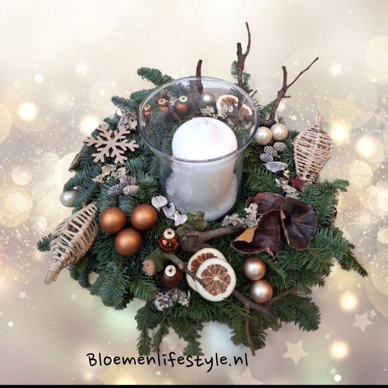 Kerstkrans met windlicht