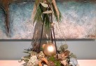 Sfeervol kerststuk dat ook na de kerst gevuld kan worden met een mooie planten ! De grijze aardewerkschaal staat op goudkleurige pootjes. Dit arrangement wordt ook als DIY doe het zelfpakket aangeboden (42,50).