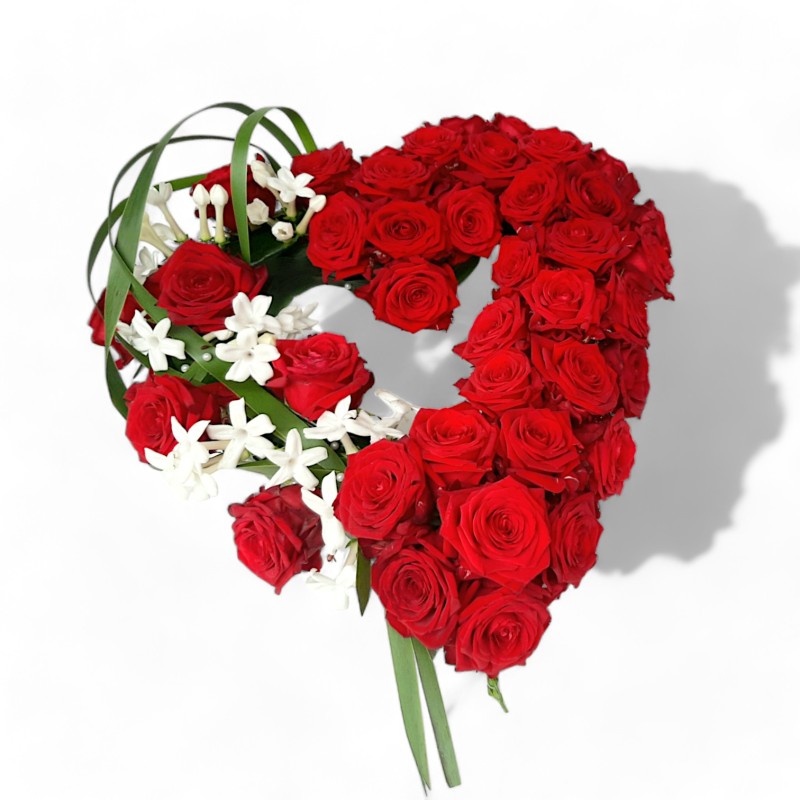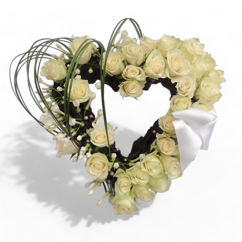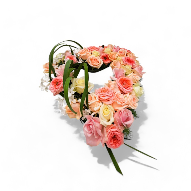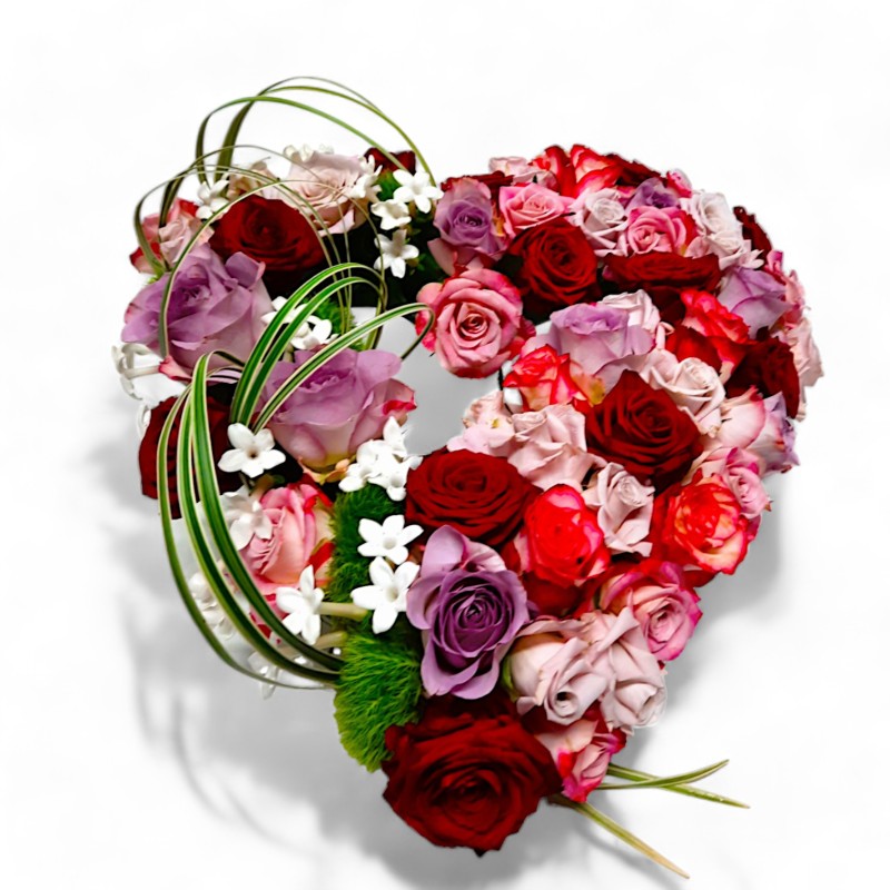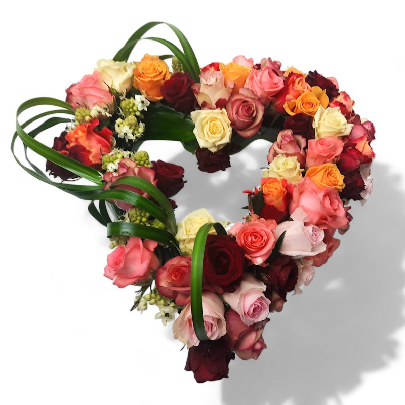 Dit open rouwhart is in diverse (gekleurde) rozen en 2 maten te verkrijgen. Foto is ca. 45 cm.